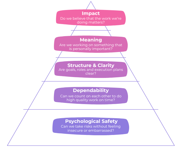 Google studied thousands of teams in “Project Aristotle” and concluded that the top-performing groups had five dynamics in common, with psychological safety the most important of them.